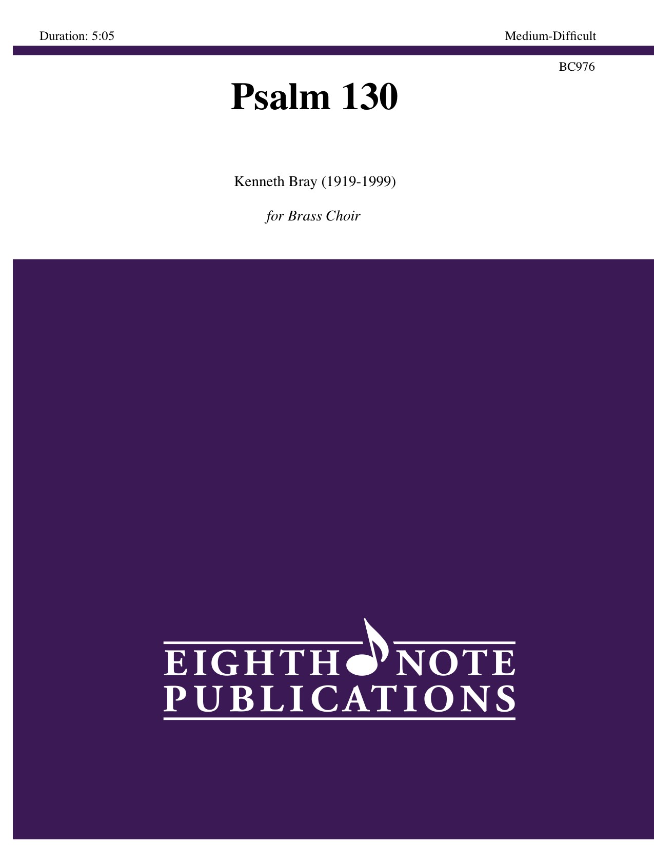 Psalm 130 is an original composition by Kenneth Bray. It is a truly powerful work, full of chromaticism and motivic development. Mr. Bray originally wrote this Psalm for choir (SATB and organ) which is also available only through Eighth Note Publications and this version for brass choir is equally as effective and moving. The piece commences with almost a feeling of anger and resentment which moves towards a more tonal-centered section which is more calm in feeling. Mr. Bray has arranged many pieces for many combinations of instruments and this composition demonstrates his knowledge of the ensemble and his sensitivity for the musical line. Scored for 4 trumpets, 4 horns, 3 trombones, euphonium, tuba and one percussionist, this versatile combination of brass instruments sounds like an organ playing the rich harmonies and interwoven lines. This piece is not too difficult and is attainable by a brass choir with some work. Psalm is a work that is sure to receive more attention in the future. |