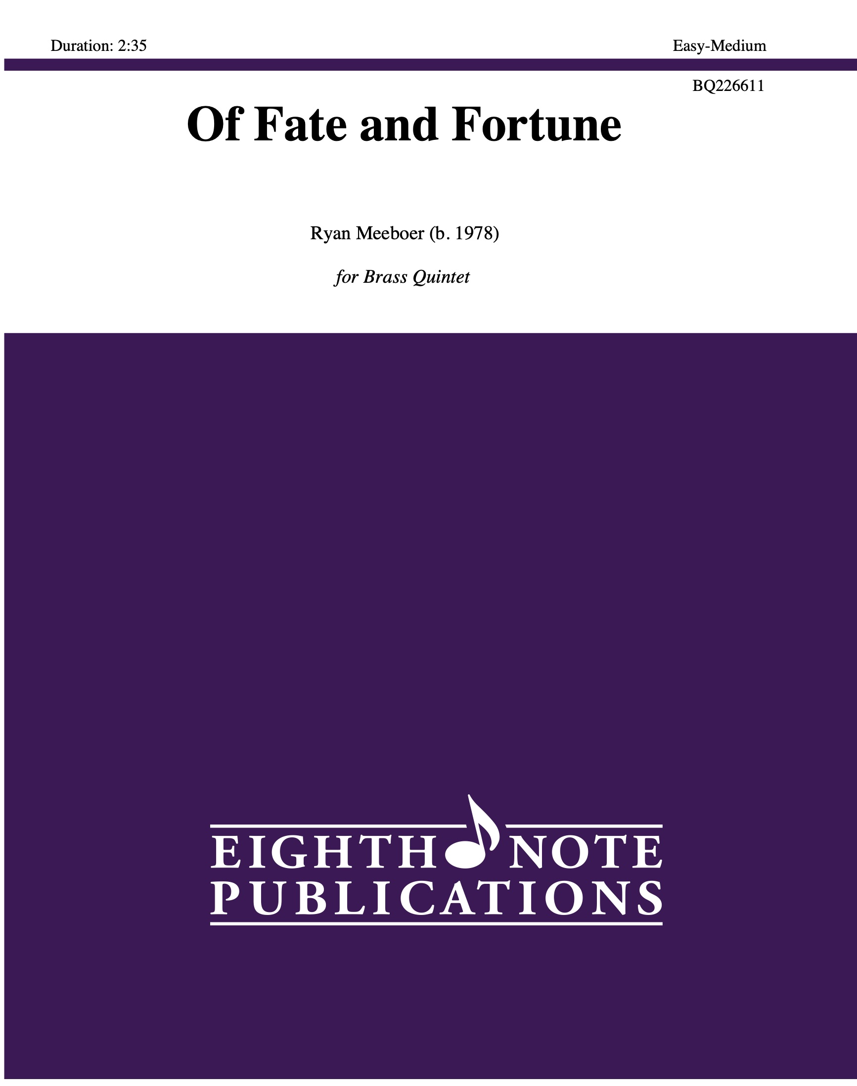 Of Fate and Fortune is a great piece that focuses on one main theme that is manipulated to take on several forms throughout. The opening introduces both the main theme and the dark and powerful nature of the piece. It moves to a quick and driving tempo with contrasting countermelodies. Melody and fun parts are found throughout the ensemble |