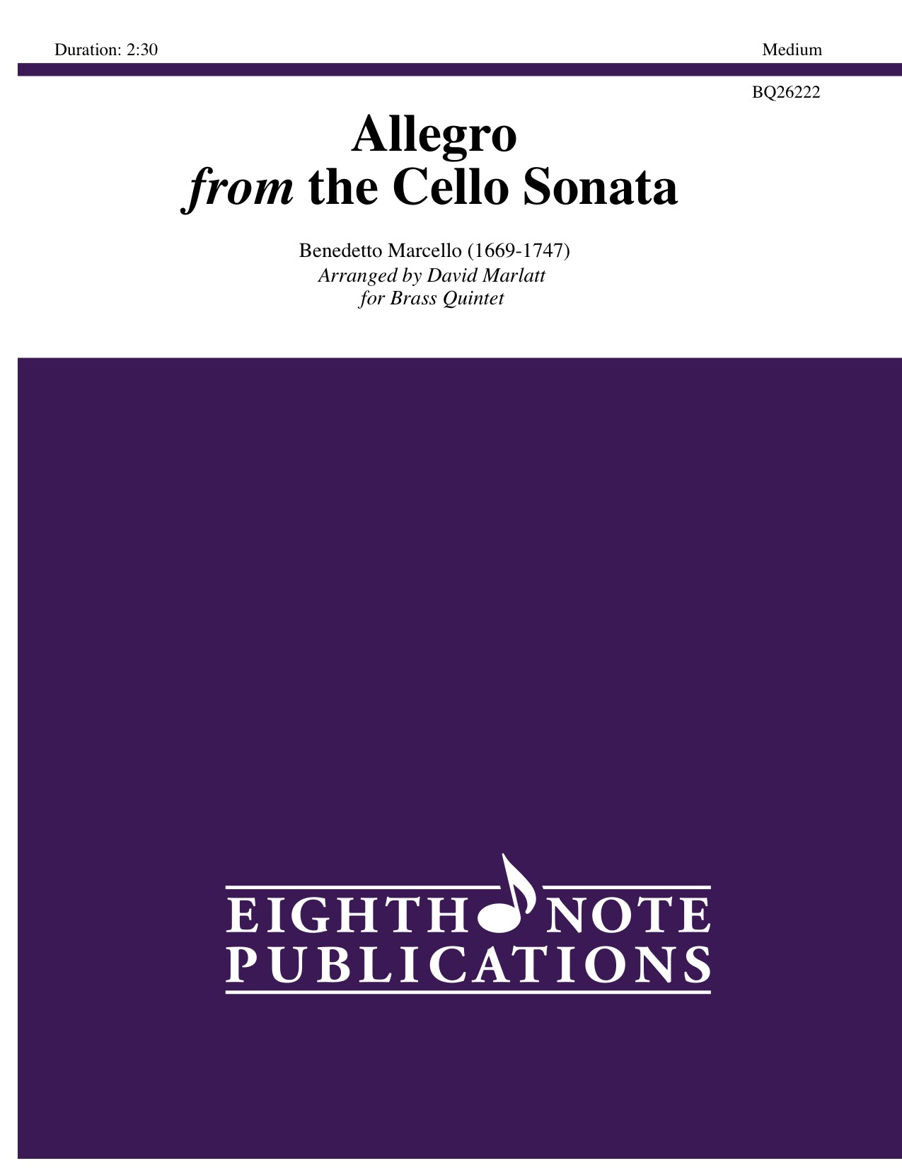 This arrangement is a movement from the Cello Sonata in G. It has been set for a trumpet solo with the remainder of the quintet in a supporting role. Flashy sounding scales (in an easy key) make this solo sound harder than it is. This is a perfect feature for one of the trumpeters in the quintet while essentially giving the remainder of the ensemble a break with very light playing and lots of rest. |