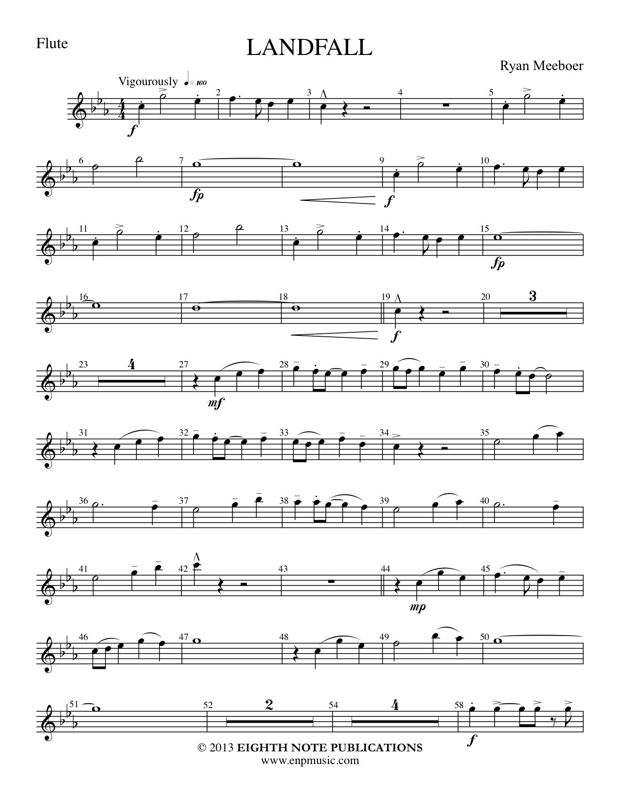 Landfall is a term that is often used to describe the situation where a severe storm that develops over water, first reaches land. This piece reflects the events of disasters such as these in several ways. Strong melodies and rhythmic material drive this exciting piece from top to bottom.