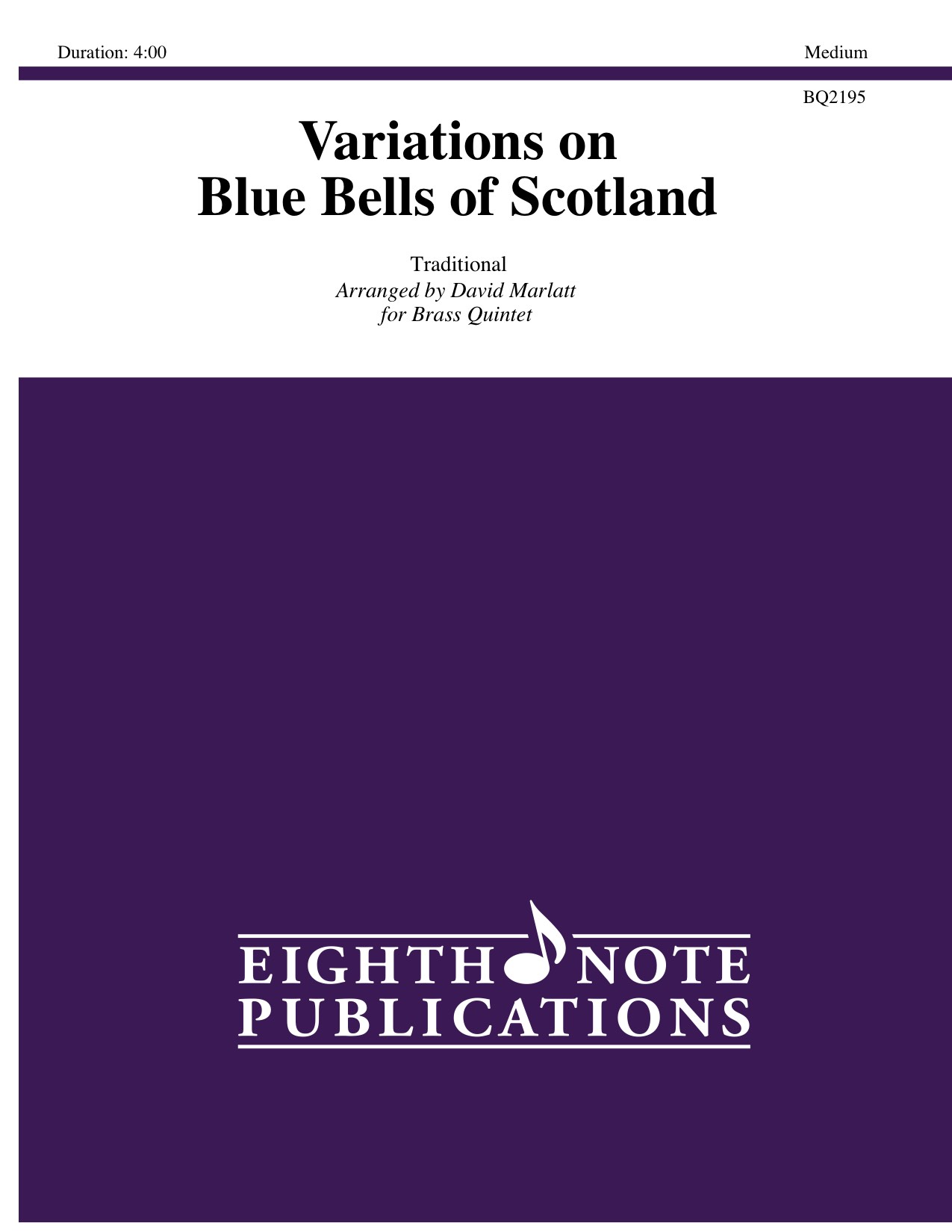 This folksong has been arranged in a theme and variations format for a variety of instruments. The original Eighth Note Publications arrangement for brass quintet was a trumpet feature but, at the request of a high school student, it was adapted for a trombone soloist. The ensemble plays the accompaniment figures as well as the break strains. The solo part is very reasonable and sounds harder than it is! |