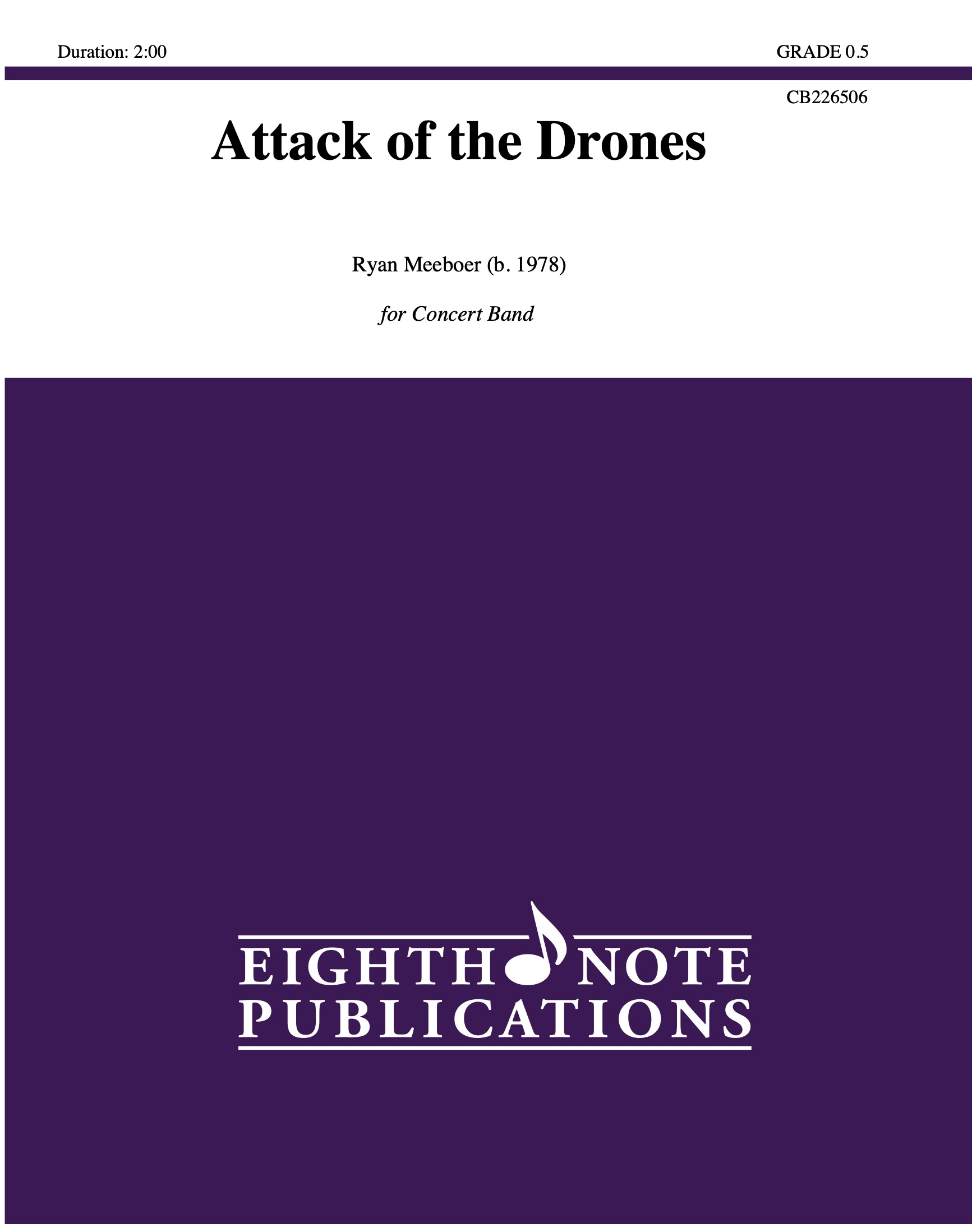 In music, a drone is a repeated or sustained pitch that provides a harmonic foundation for melodies and harmonies to build around it. This definition describes this piece perfectly as the entire piece revolves around the aggressive drone introduced in the opening of the piece. This is full of energy and exciting parts for all players. |